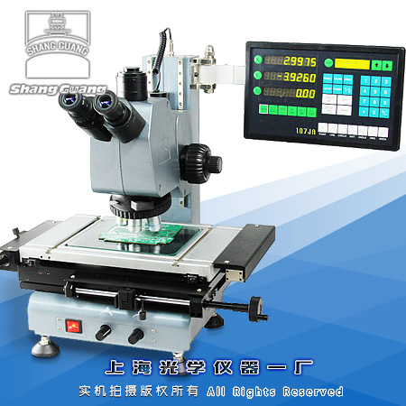 107JPC測量顯微鏡小型、多用途的精密測量顯微鏡,結(jié)構(gòu)緊湊、成像清晰、精度高,可作二維坐標(biāo)的精密測量,及Z向的輔助測量。儀器帶有可調(diào)光的落射、透射和輔助照明裝置及多種濾色鏡,給各種復(fù)雜形狀的測量工作帶來很大方便。